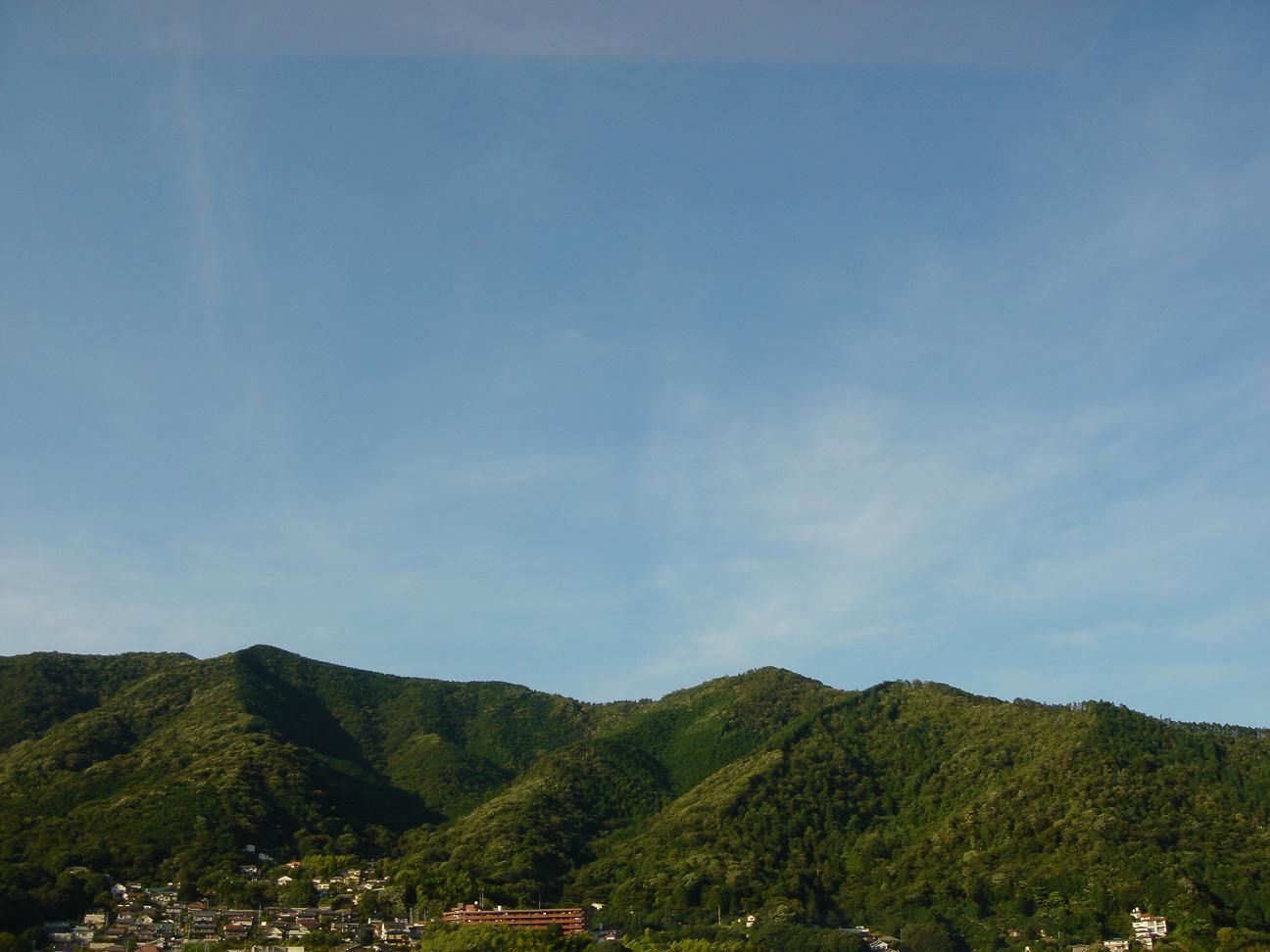 部屋の大きな窓からは、すぐ近くに夏場ならではの青々とした樹木の生い茂った山々が見える。