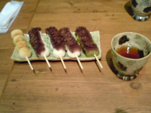 その和菓子屋にて飲み物と団子で、一服。