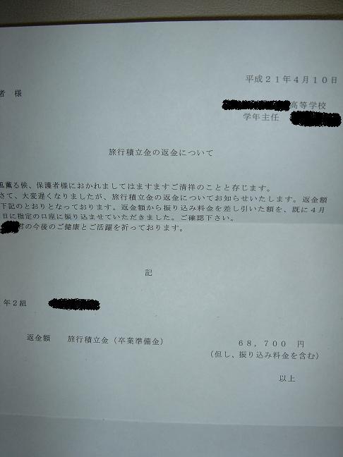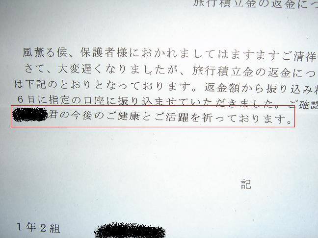 旅行積立金の返金…そういえば、口座に振り込まれてた。