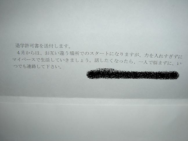これは以前にも書いたと思う、担任が退学許可証に密かに添付してた手紙。
